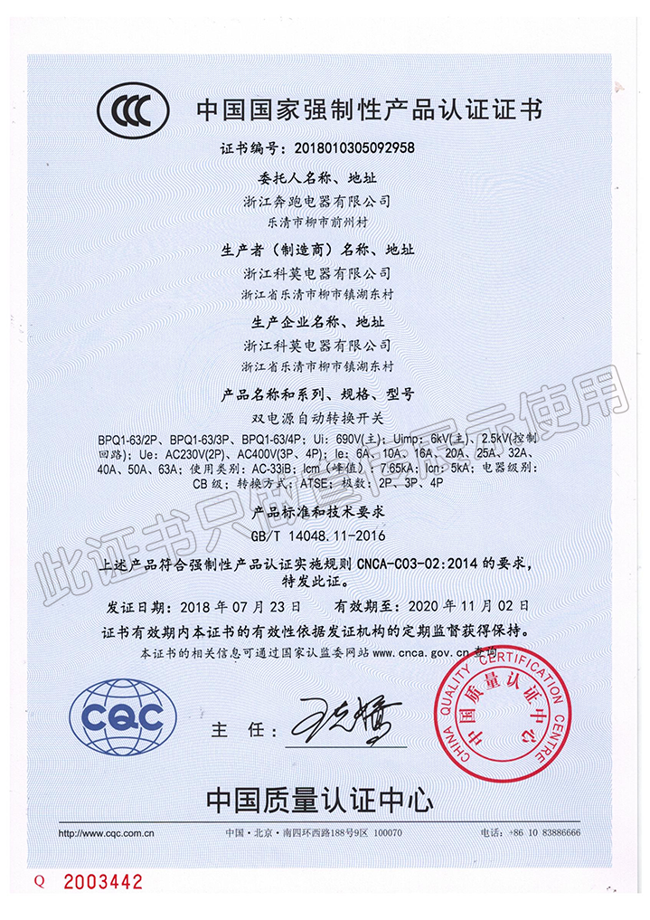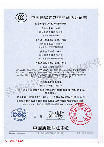 中國國家強制性產(chǎn)品認(rèn)證證書